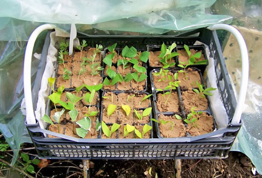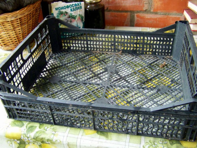 Для того чтобы вырастить 50 саженцев, достаточно сделать примитивный череночник. Понадобится пластиковый сетчатый ящик, в который у меня помещается 4 кассеты на 9 ячеек, кассета на 6 крупных ячеек и два маленьких контейнера. По высоте ящик должен быть как минимум 15 см.